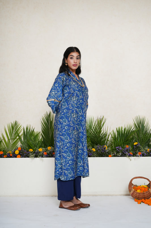 Blue Floral Embellished Kurta with Palazzo