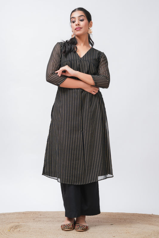 Black Georgette Lurex Kurta with Palazzo