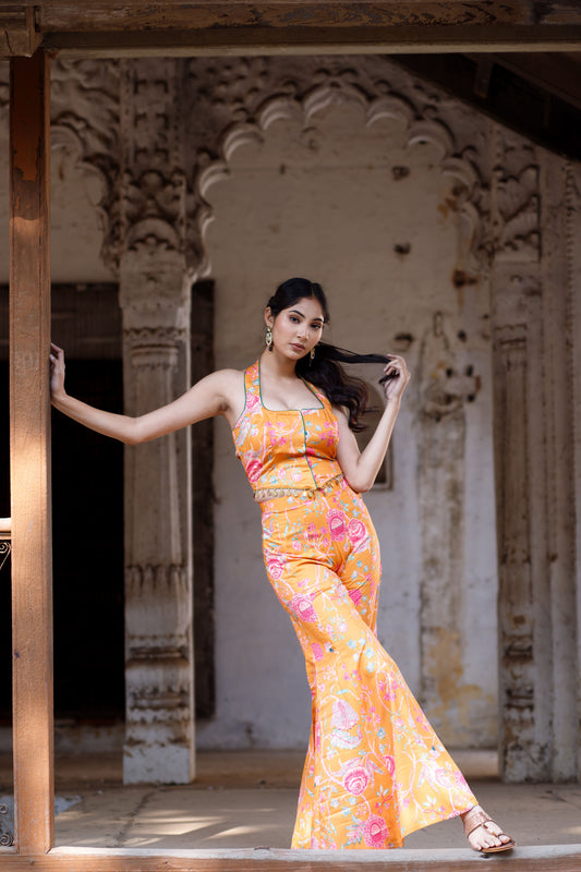 Chintz Floral Printed Halter Neck Corset with Sharara