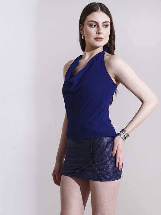 Blue Georgette Cowl Neck Top