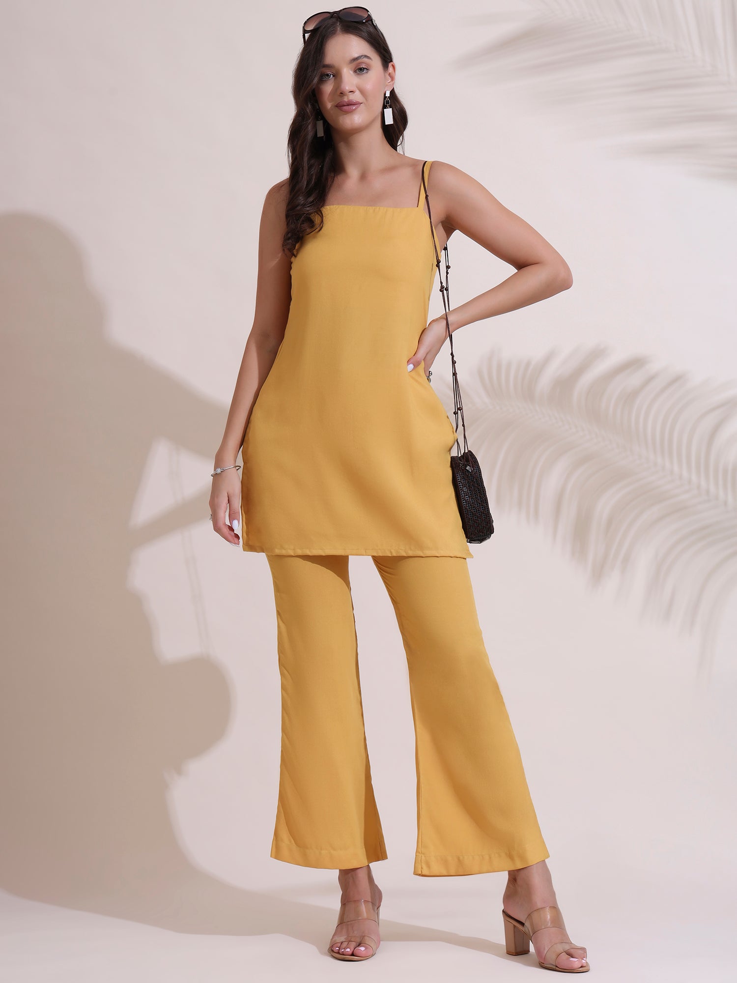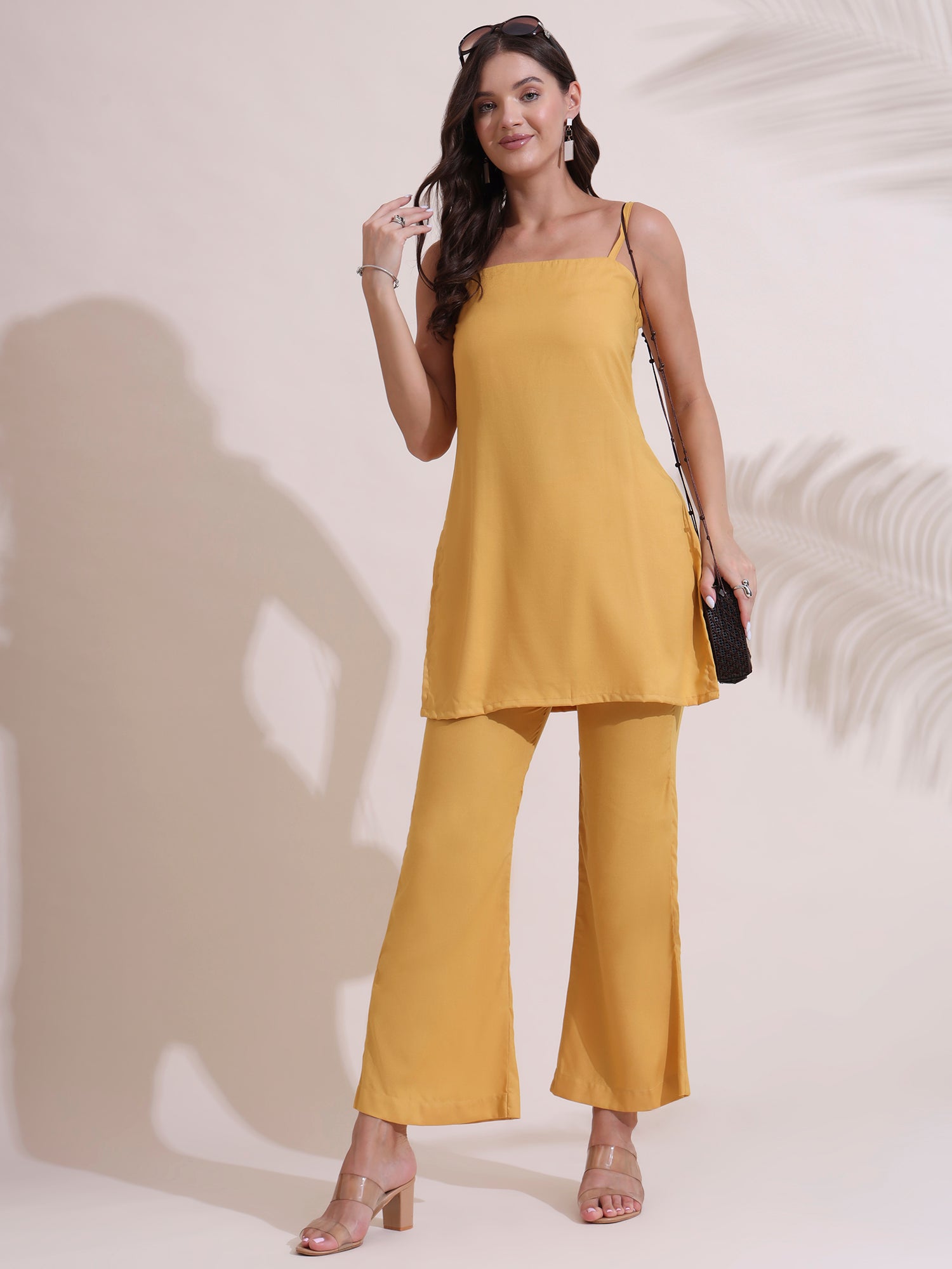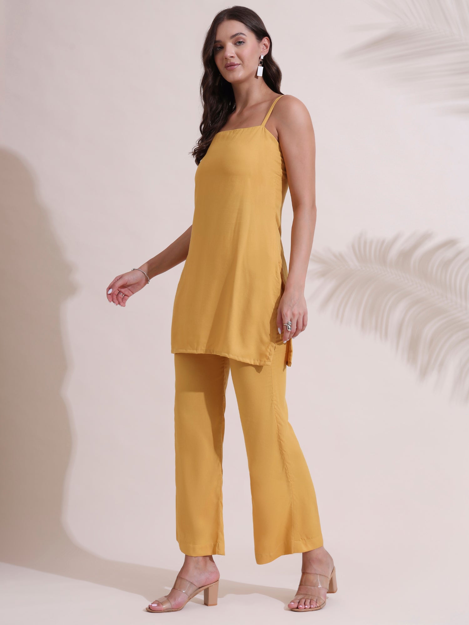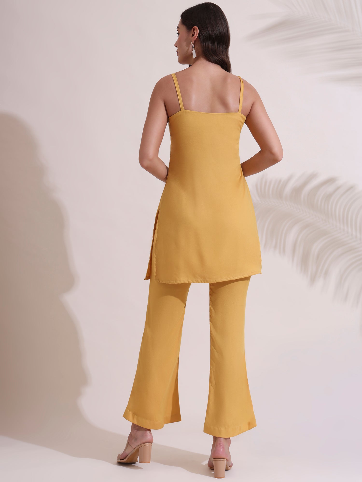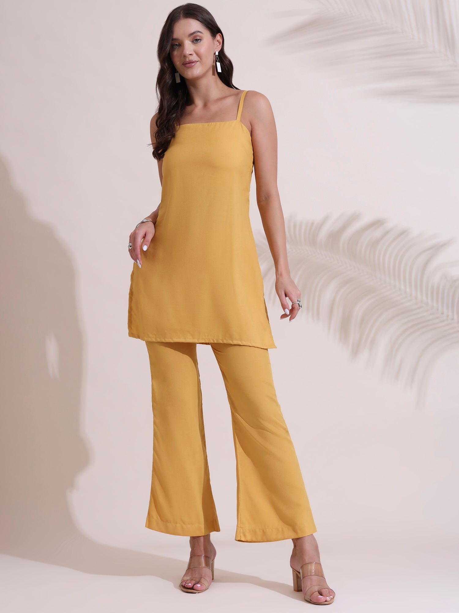 Light, breathable, and full of modern charm — this rayon strappy kurta and pant set is your go-to choice for easy elegance. The kurta features delicate shoulder straps and a relaxed silhouette that flows beautifully, offering a flattering and feminine look perfect for warm days.