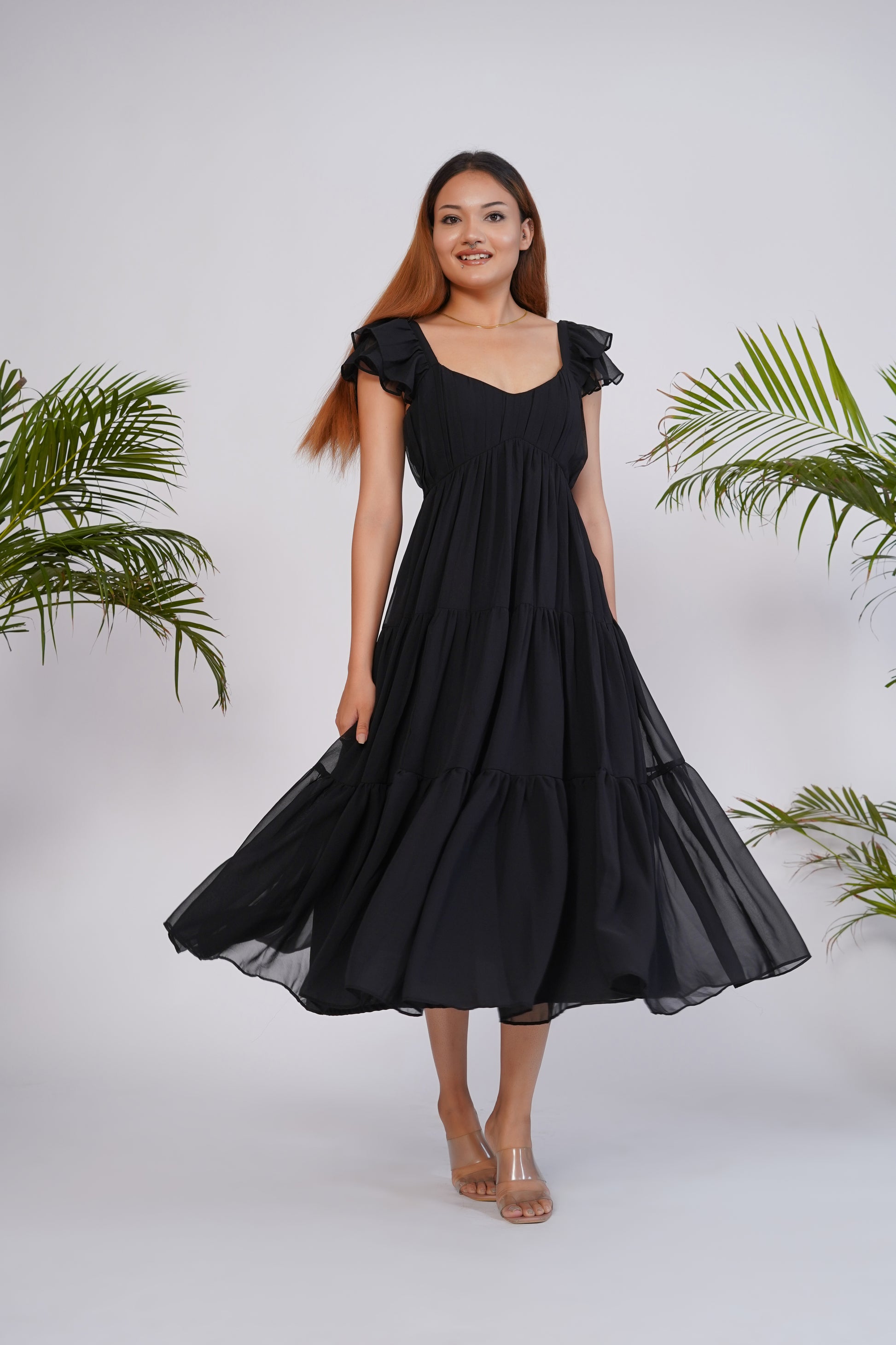This Dress offers a luxurious feel while ensuring comfort throughout the day. The tiered design adds dimension and movement to the dress, creating a flattering silhouette that drapes beautifully.