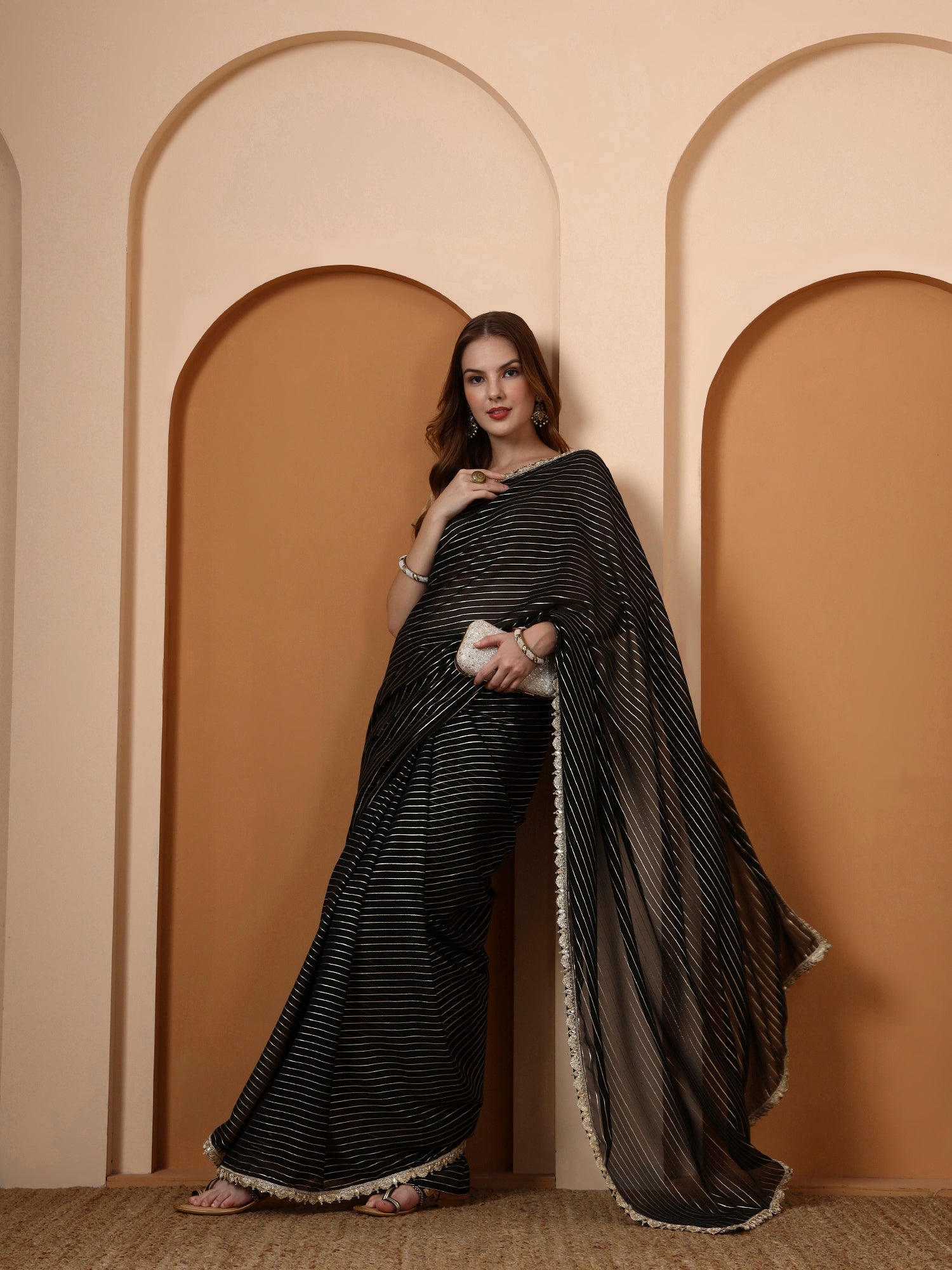 Turn heads with timeless elegance in this women's embellished Black classic saree, a perfect blend of tradition and glamour. Crafted from high-quality fabric, the saree features a rich black hue symbolizing grace and celebration. Intricately embellished with beautiful lace detailing, it adds just the right amount of sparkle for festive occasions, weddings, or special events.