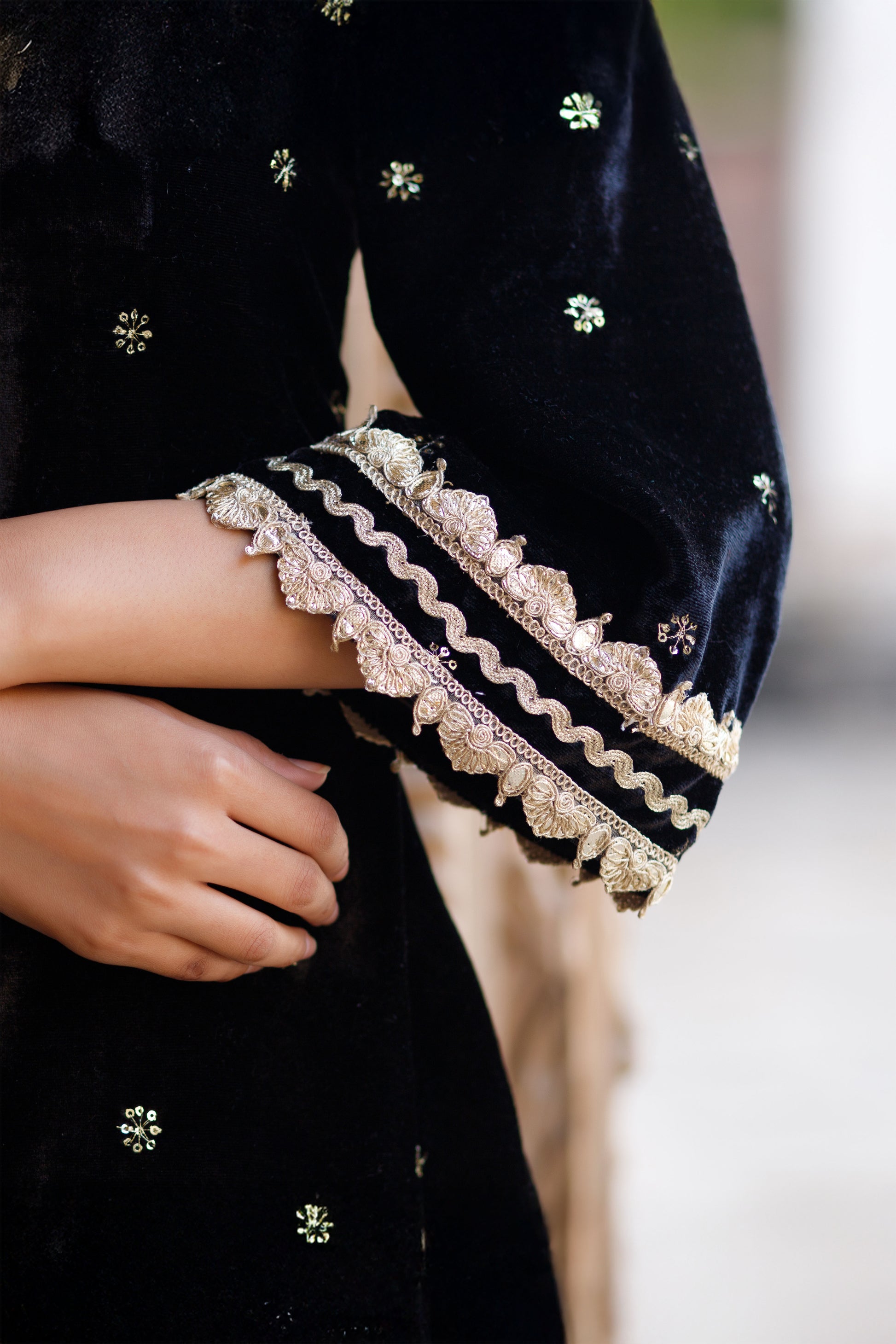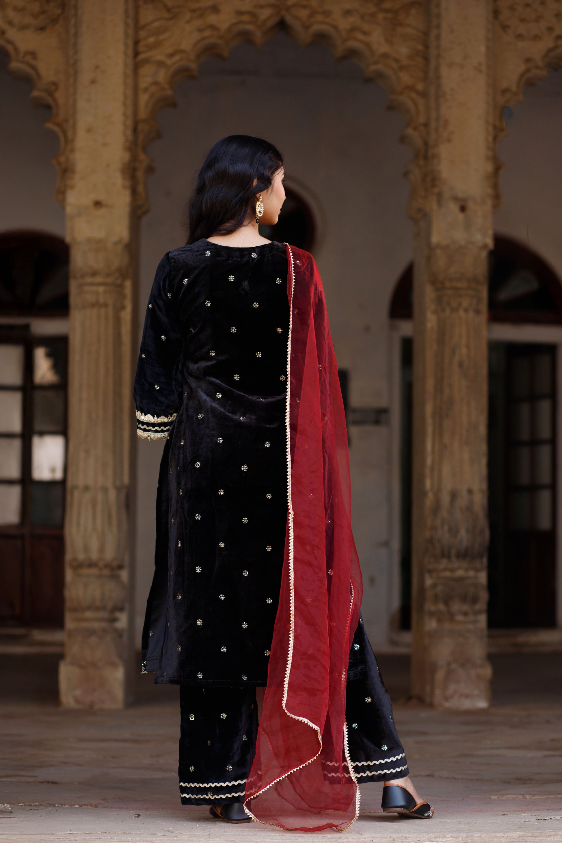 Black Velvet Embellished Kurta Set