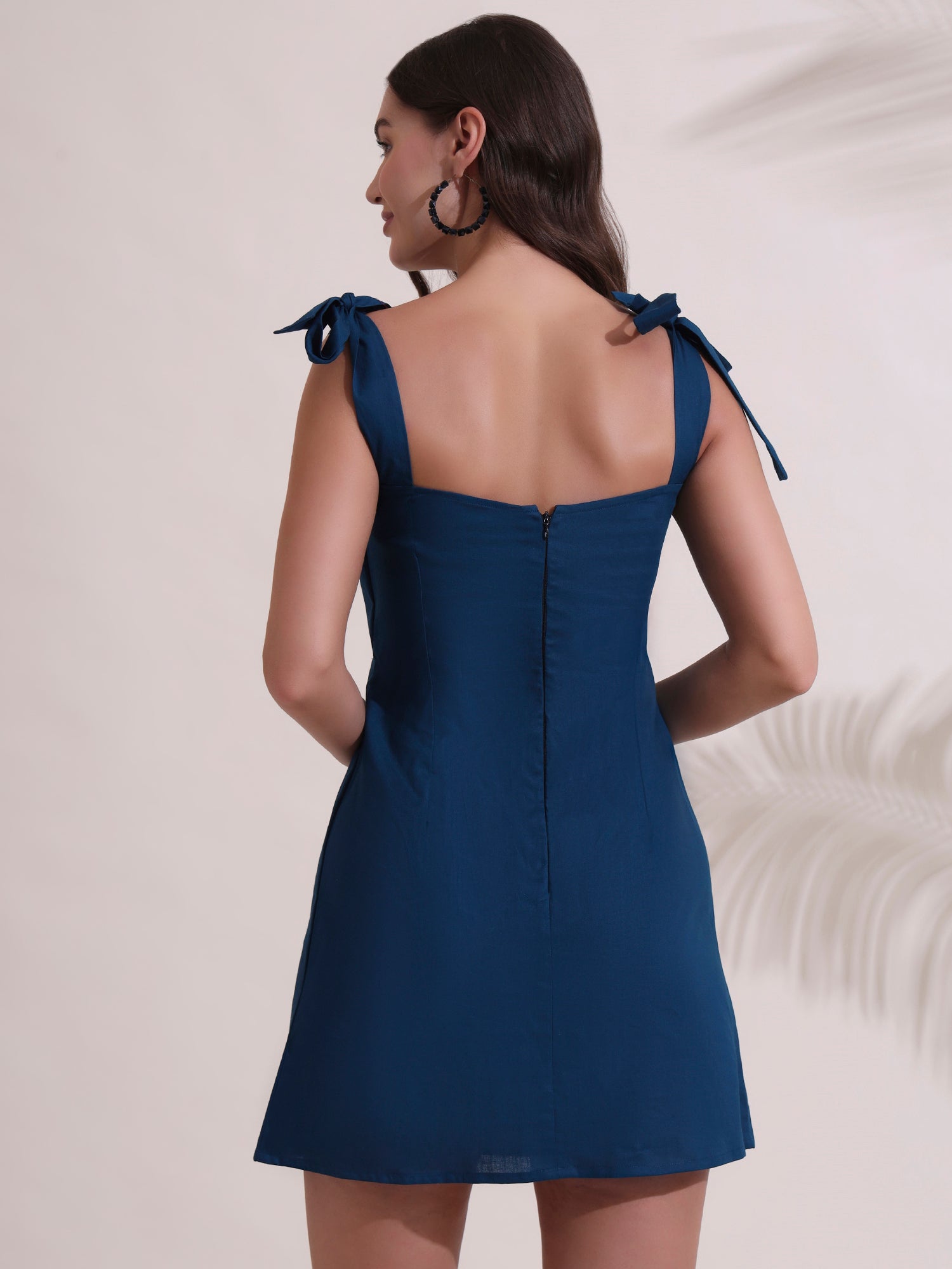 Blue Poplin Shoulder Tie-up Little Dress