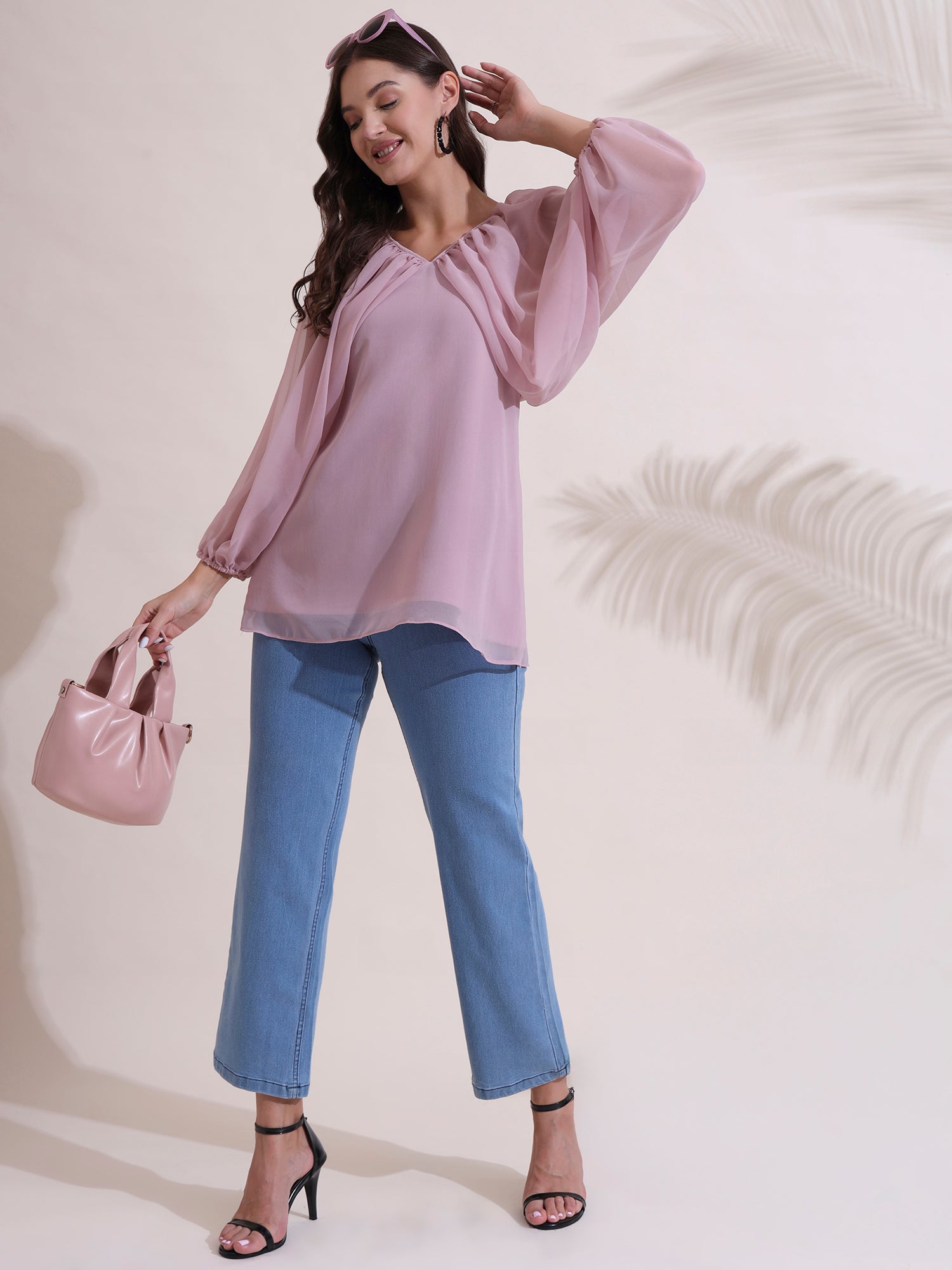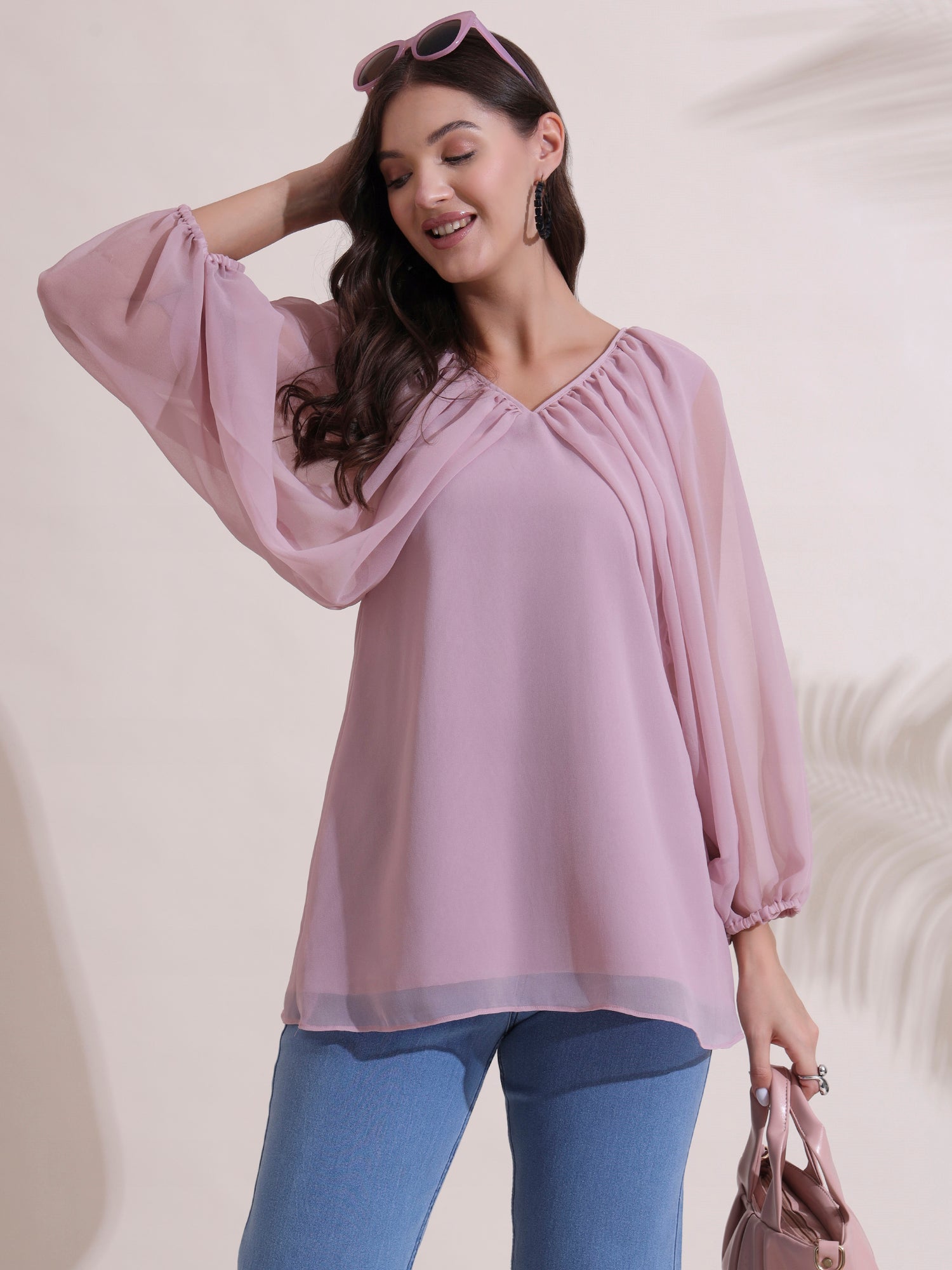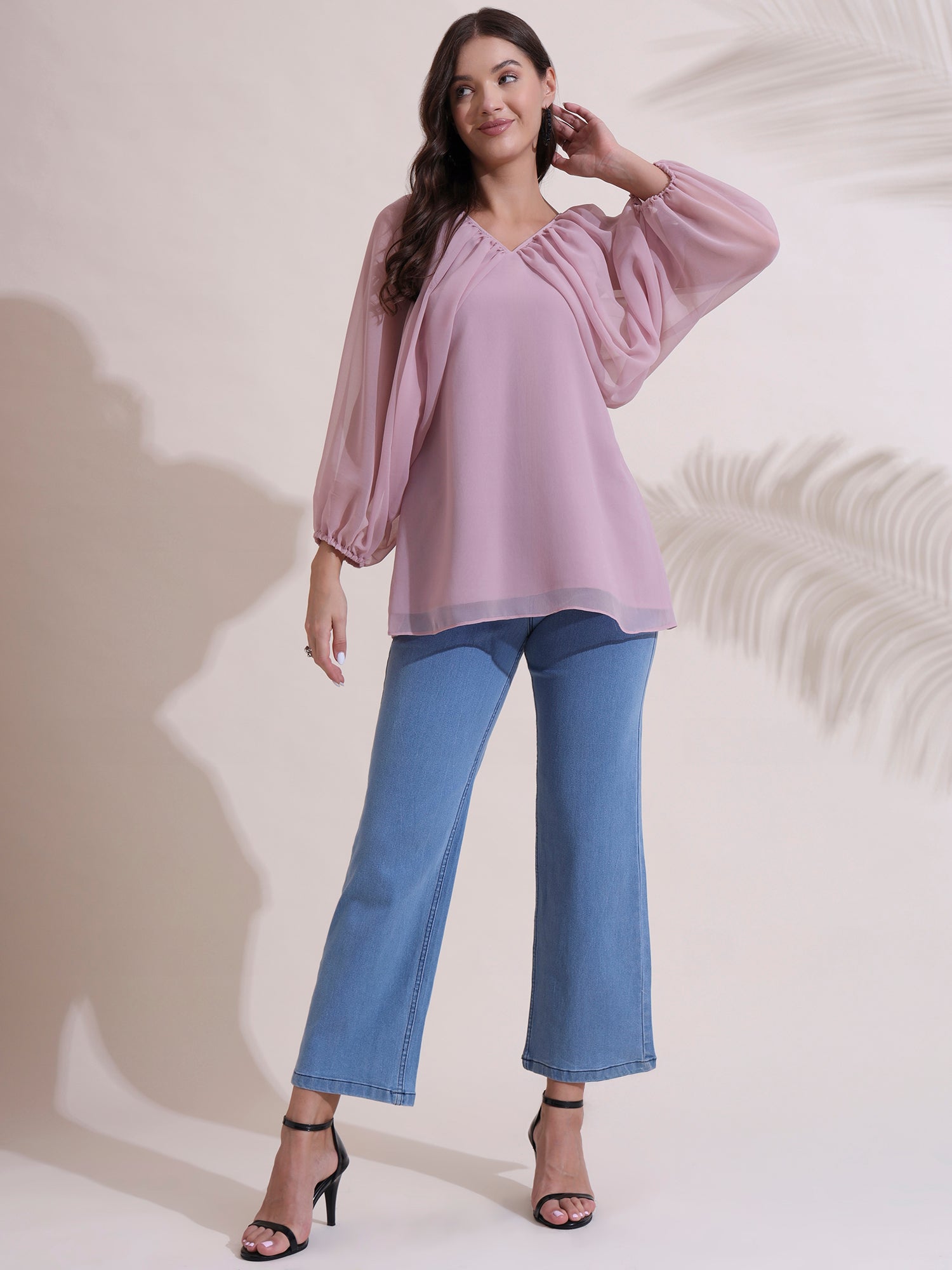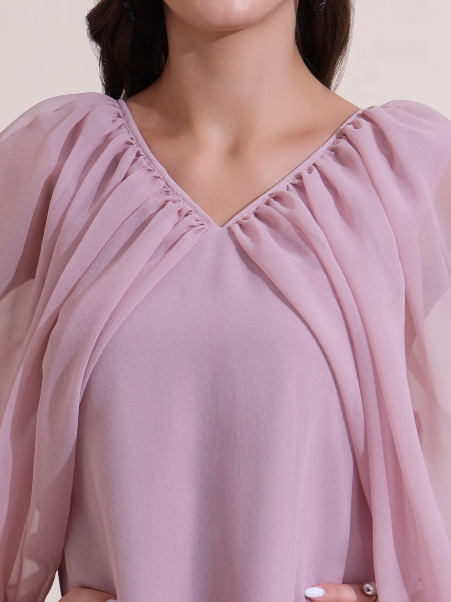 Delicate, airy, and full of movement — this georgette butterfly sleeves top is the epitome of effortless elegance. Crafted from lightweight, semi-sheer georgette, it drapes beautifully over the body, offering both comfort and style on warm days.