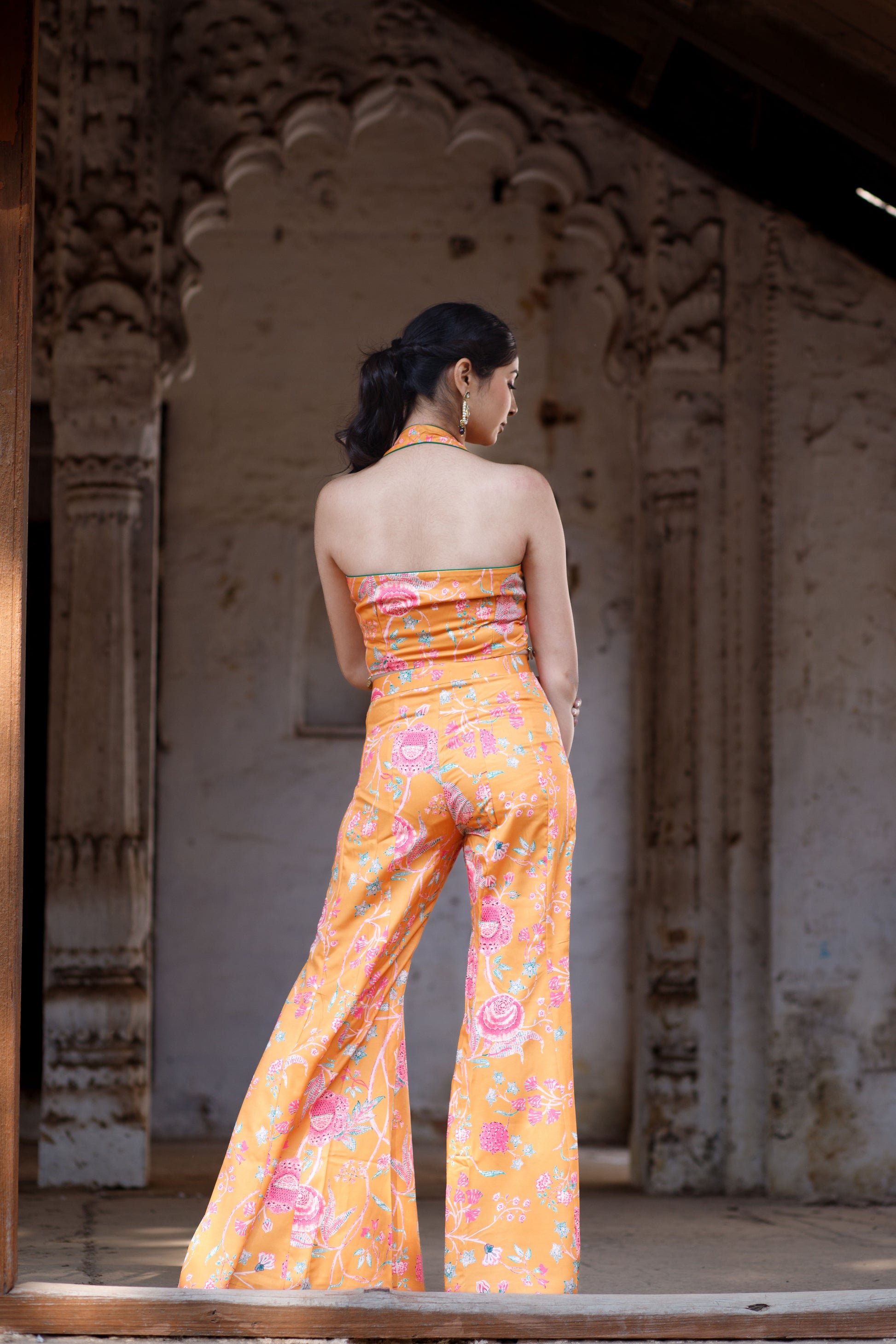 Chintz Floral Printed Halter Neck Corset with Sharara