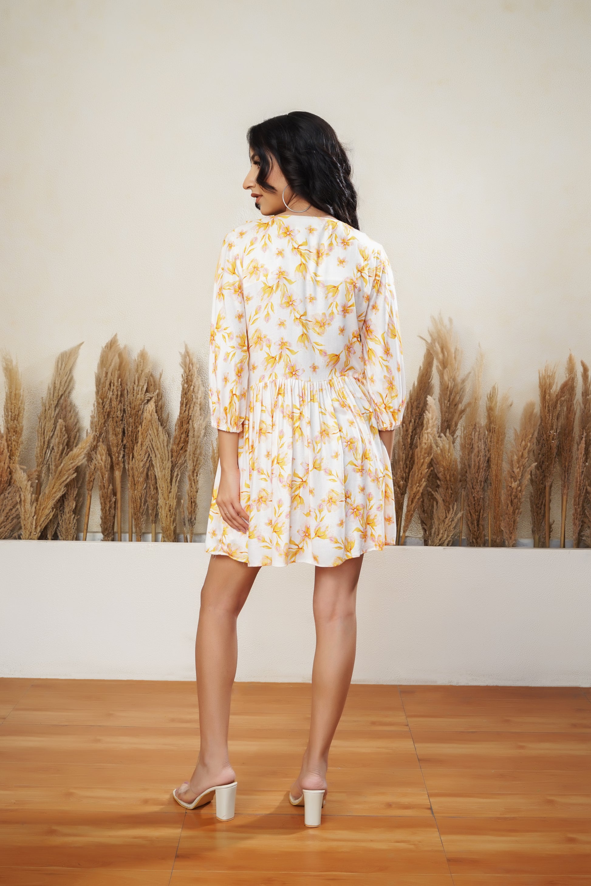 Indulge in the whimsical charm of summer with our floral printed women's casual V-Neck loose-fitted dress. This effortlessly stylish dress captures the essence of the season, blending comfort with a touch of playfulness. Embrace the carefree spirit of summer in this on - trend and comfortable floral dress with stylish flare.