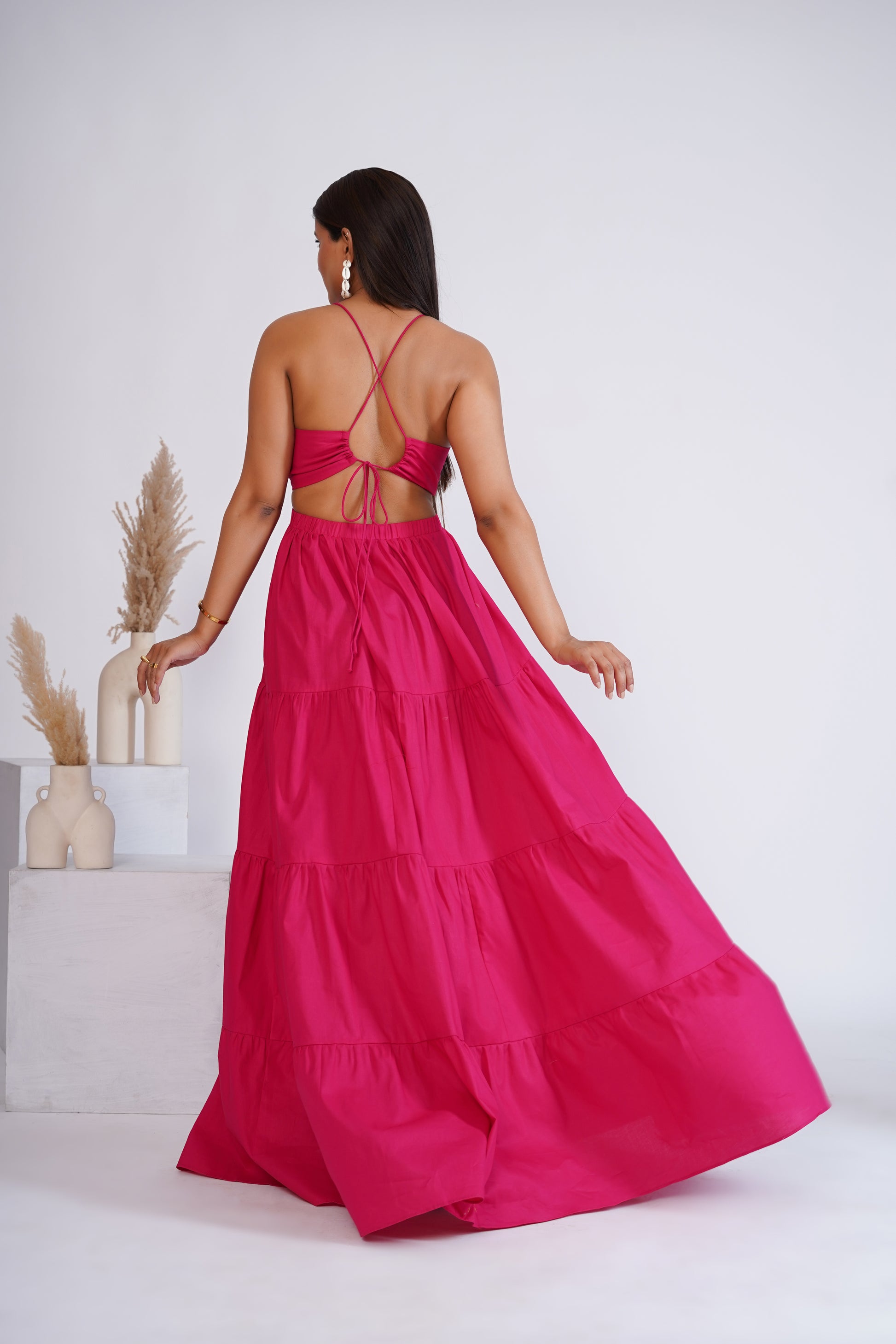 Hot Pink tiered maxi dress