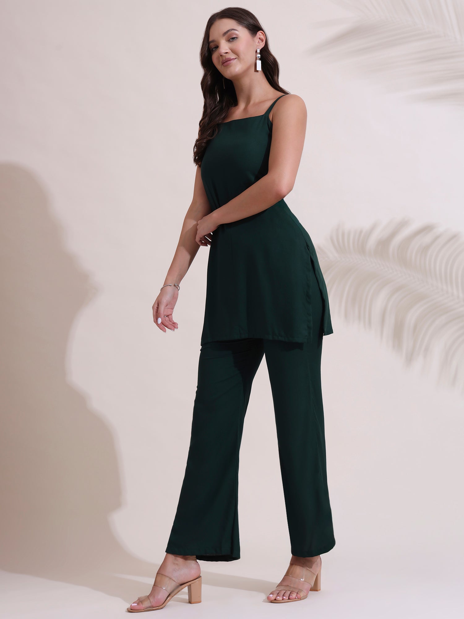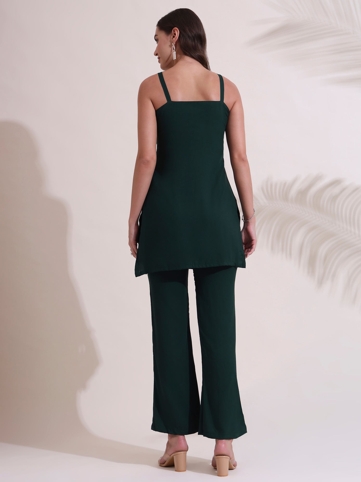 Light, breathable, and full of modern charm — this rayon strappy kurta and pant set is your go-to choice for easy elegance. The kurta features delicate shoulder straps and a relaxed silhouette that flows beautifully, offering a flattering and feminine look perfect for warm days.
