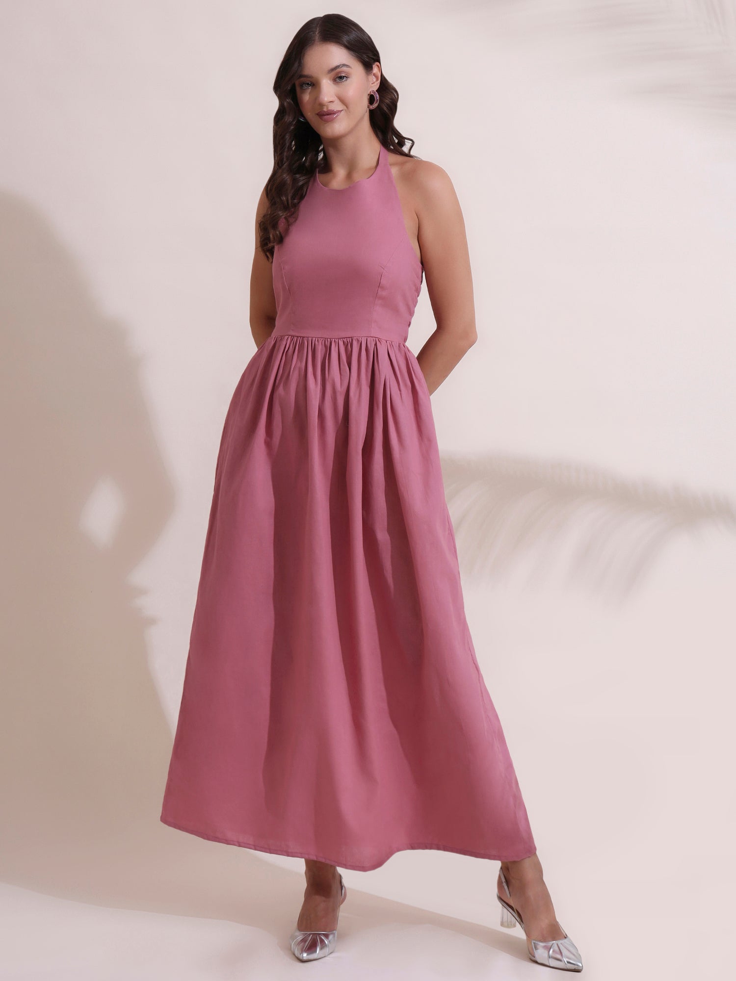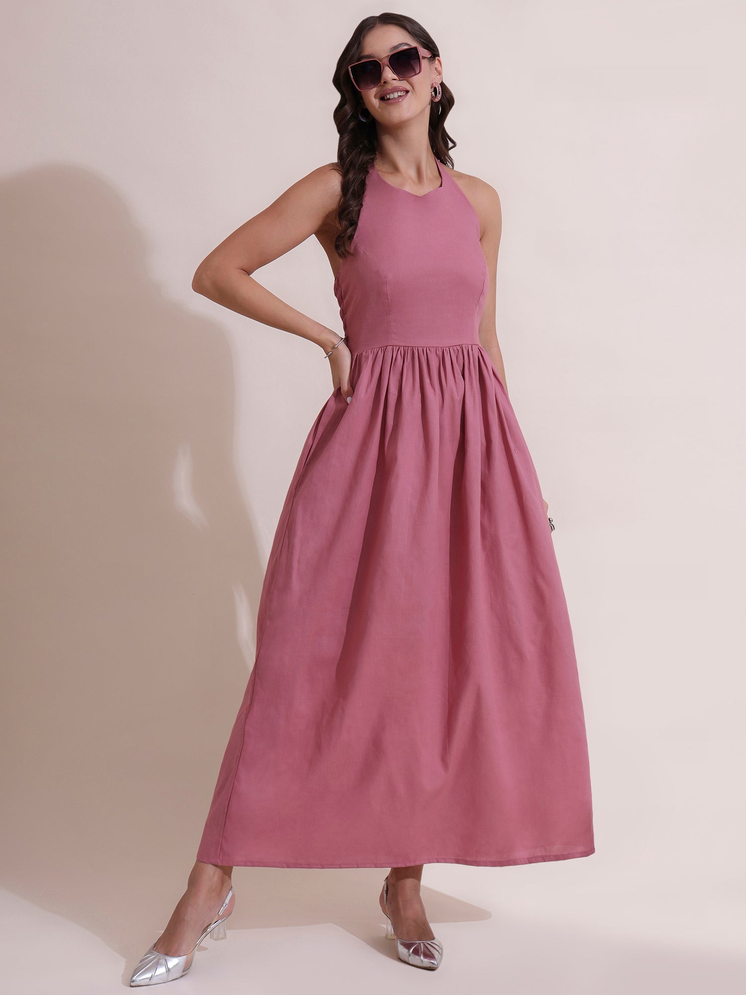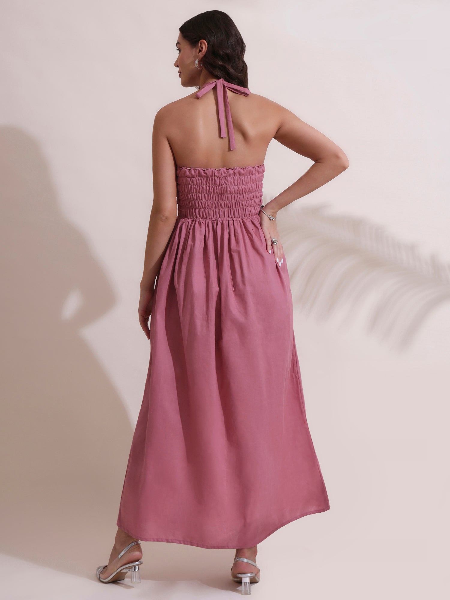 Breeze through summer in effortless style with this Women's Halter Neck Summer Midi Dress. Designed for warm days and golden hour moments, this dress features a flattering halter neckline that elegantly frames the shoulders and adds a touch of sophistication.