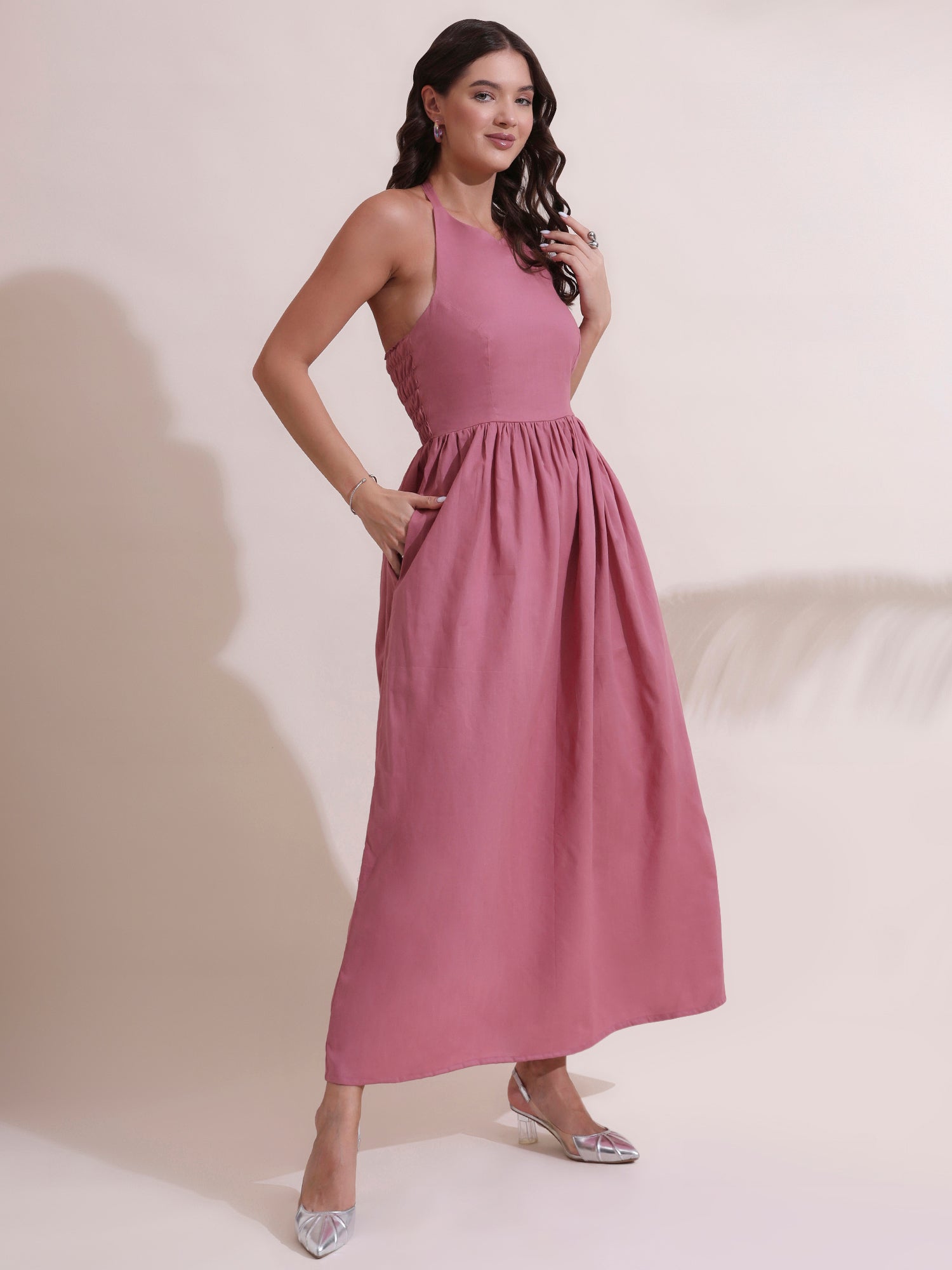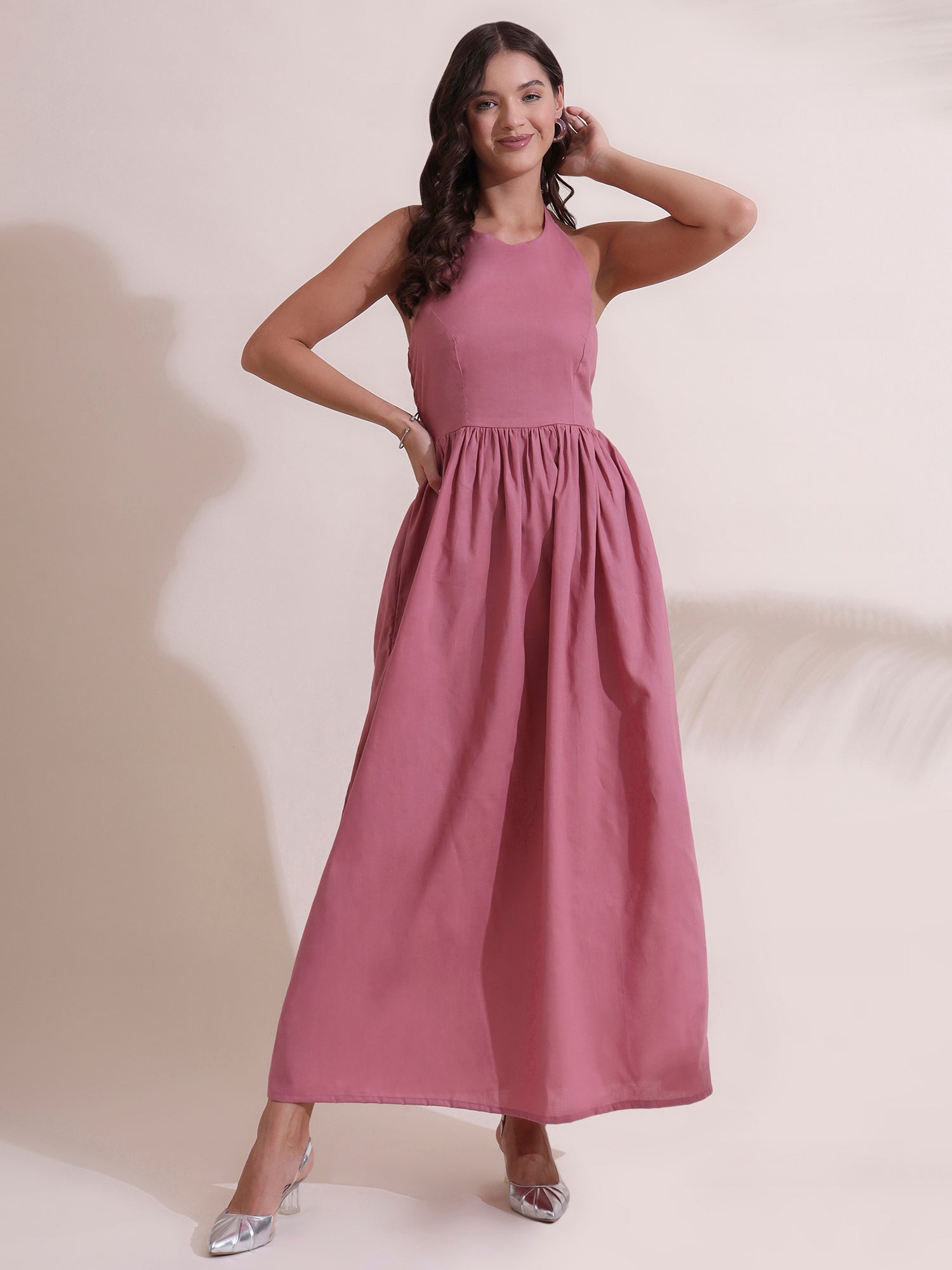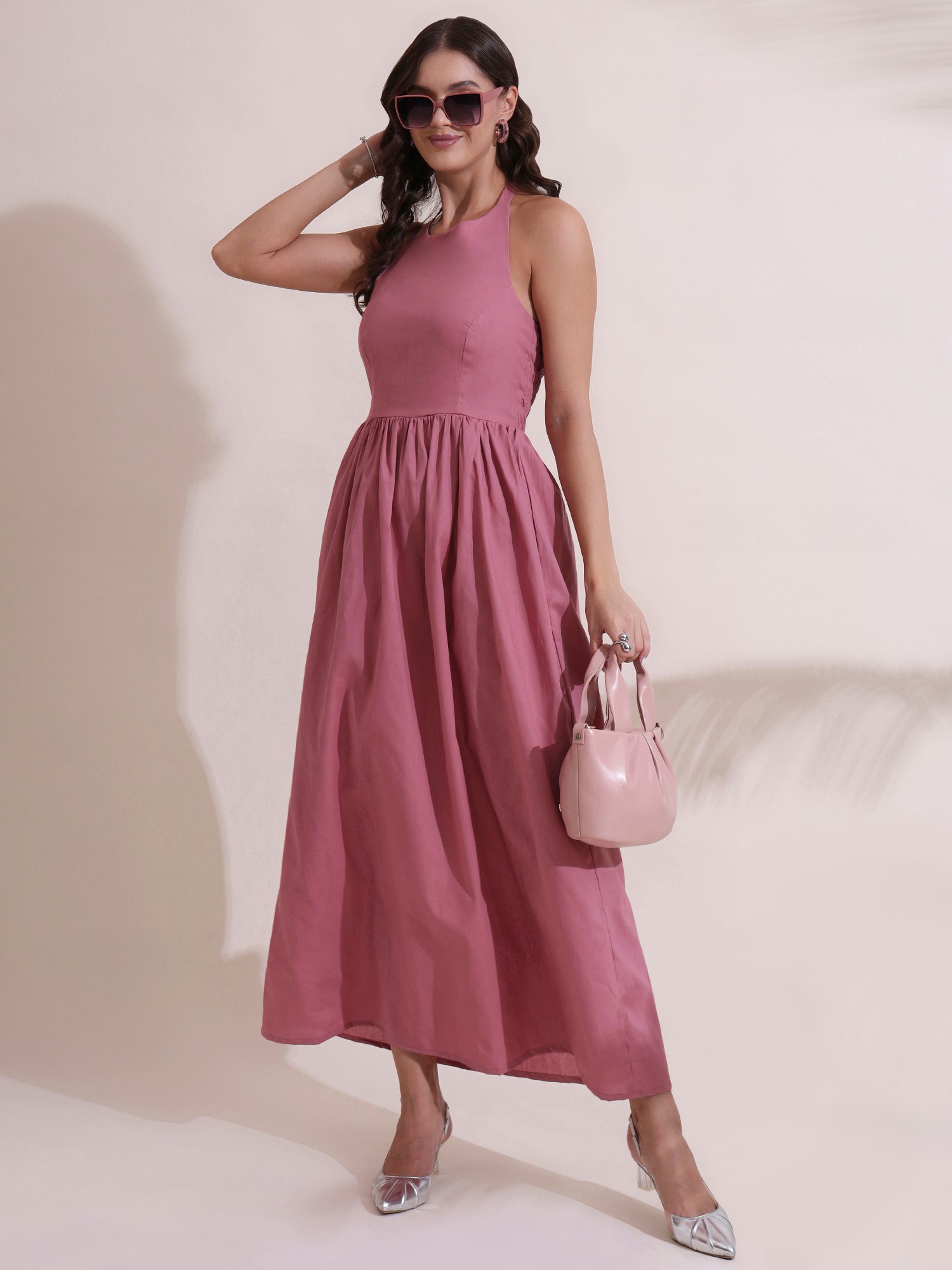 Breeze through summer in effortless style with this Women's Halter Neck Summer Midi Dress. Designed for warm days and golden hour moments, this dress features a flattering halter neckline that elegantly frames the shoulders and adds a touch of sophistication.