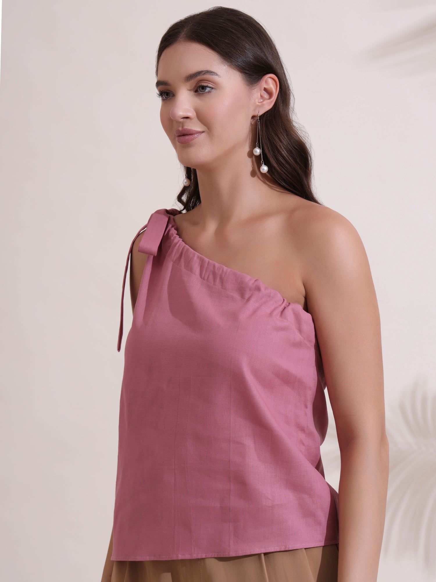 Step into summer with confidence and style in this cotton one-shoulder tie-up top — a perfect blend of playful elegance and airy comfort. Crafted from breathable, lightweight cotton, this top is designed to keep you cool while turning heads.
