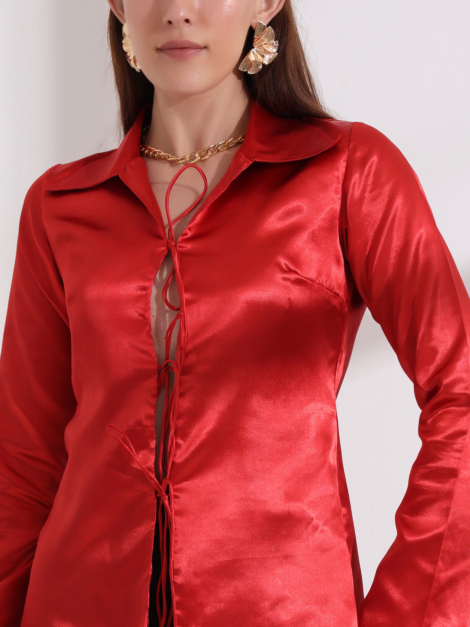 This Shirt is a stylish and elegant top designed for both casual and semi-formal occasions. The front tie-up detail allows for an adjustable fit, creating a flattering silhouette while adding a playful and trendy element to the design.